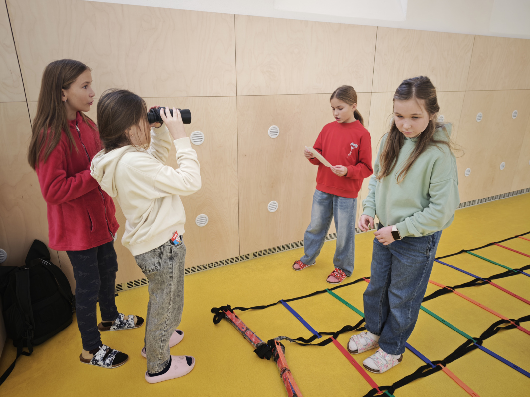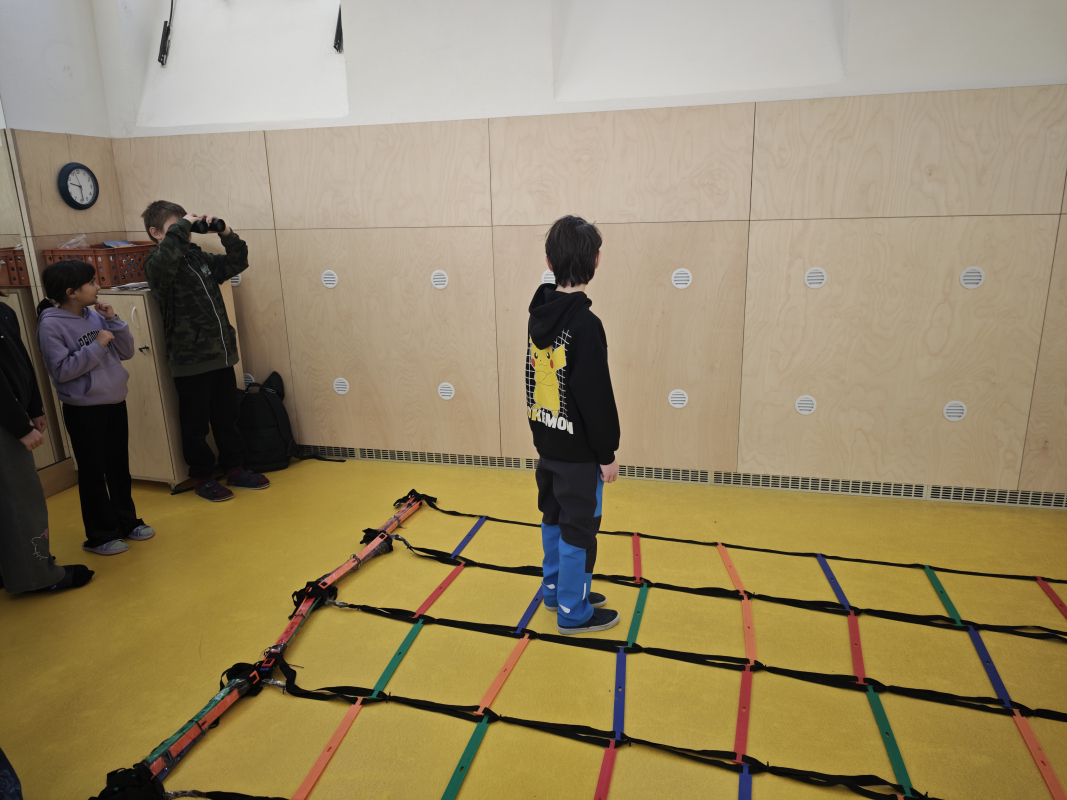 Dalším oblíbeným stanovištěm byla překážková dráha „Minové pole,“ která prověřila spolupráci a důvěru. Žáci pracovali ve dvojicích. Jeden měl k dispozici mapu bezpečné cesty a navigoval svého parťáka, který nesměl šlápnout na „nebezpečné“ políčko. Úspěch vyžadoval přesné instrukce, trpělivost a souhru obou členů týmu. Děti si tak mohly vyzkoušet orientaci v mapě, porozumět značení a následně vše prakticky vysvětlit tak, aby jejich spoluhráč bezpečně prošel celou dráhu.