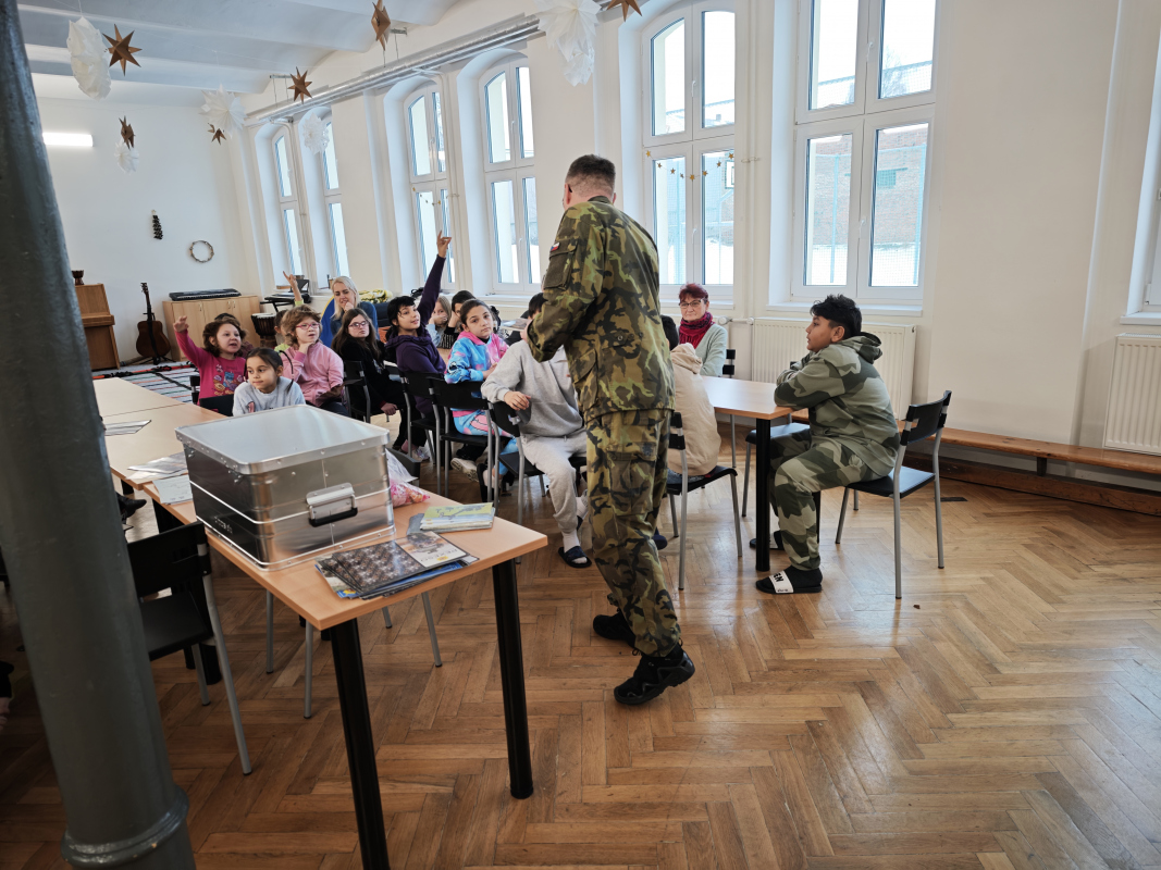 Program nebyl jen o teorii. Děti si mohly prohlédnout a vyzkoušet výstroj i výzbroj vojáka, naučily se základní pravidla bezpečného zacházení se zbraní a vyzkoušely si mířenou střelbu na terč. Nechyběla ani zábavná aktivita zaměřená na orientaci v terénu, která prověřila jejich schopnosti v praxi. Atmosféra byla skvělá – žáci byli nadšení, aktivně se zapojovali a celý den si užili.